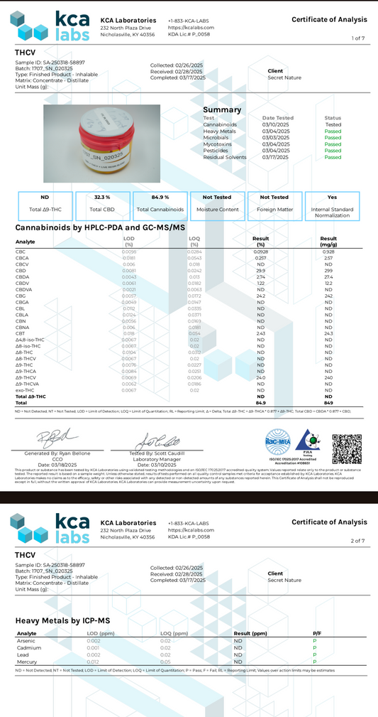 Secret Nature 1 g CBD /THCV Disposable Vape