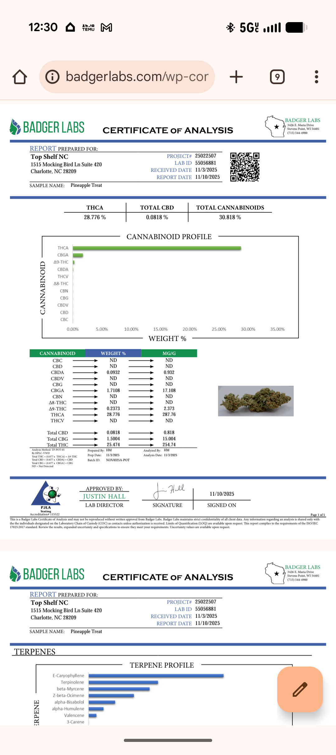 Pineapple Treat Organically Grown Flower ๐25.47% (Sativa)
